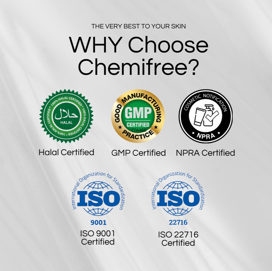 Chemifree believes in "Nature plus zero", creating beauty through the purest natural extracts with no unnecessary additives, ensuring gentle, effective, and rejuvenating skincare.